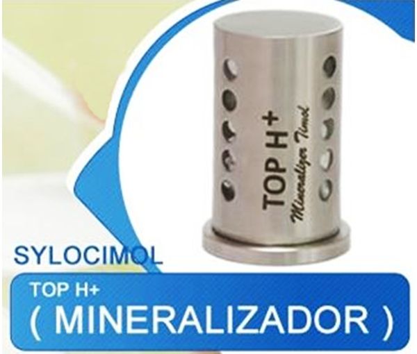 O Top H+ é um produto produzido em aço inox 316, o mesmo material utilizado no Sylocimol. Seu interior é composto por pedras de dolomita, que em contato com a água, libera constantemente o cálcio e o magnésio para proporcionar o teor mineral necessário à formação dos hidróxidos alcalinos, que são extremamente necessários para o combate a acidez e equilíbrio do organismo humano.